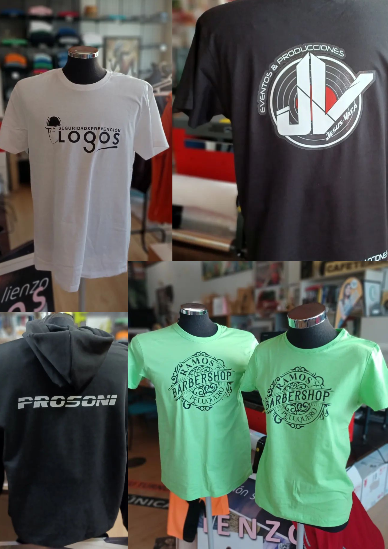Trabajamos con distintos tipos de prendas. Normalmente los más comunes suelen ser camisetas y sudaderas en las que, multitud de empresas, confían en nosotros para personalizar su vestuario con los logos de sus empresas. Es una muy buena altrenativa para mejorar la imagen de tu empresa.
