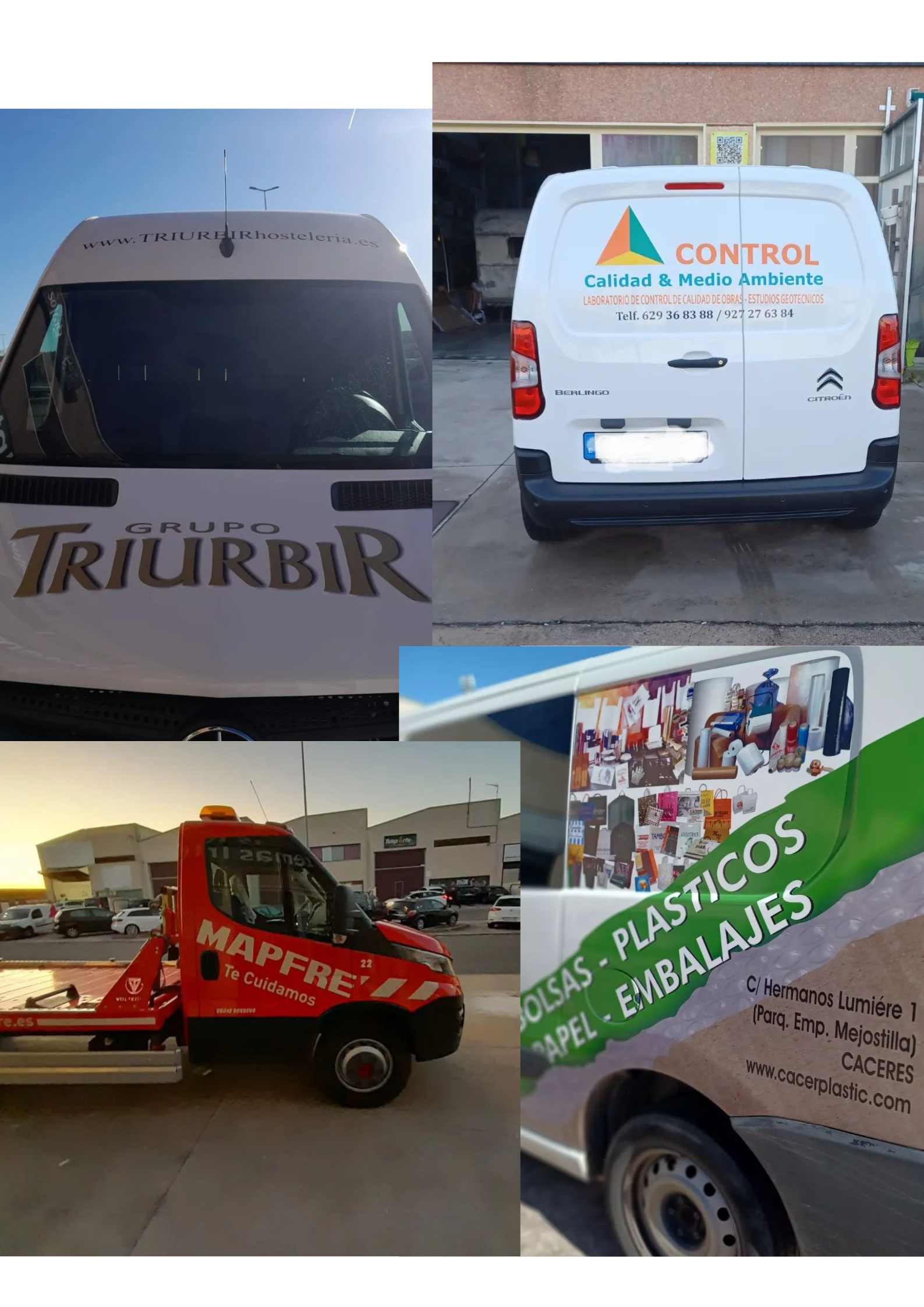 Rotulación personalizados de algunas empresas para diferentes tipos de vehículos. Trabajamos con coches, furgonetas, motocicletas, grúas o incluso coches de competición en los que podemos vinilar cualquier tipo de diseño.
